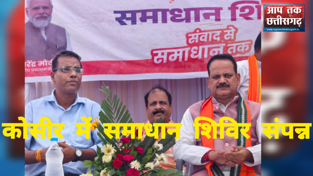 जिले के सारंगढ़ विकासखंड के ग्राम कोसीर में आयोजित समाधान शिविर के स्टालों का निरीक्षण जनप्रतिनिधियों और कलेक्टर डॉ संजय कन्नौजे के द्वारा किया गया। कलेक्टर ने जिले के अधिकारियों को विभागीय आवेदन, कार्य, हितग्राहियों को सामग्री वितरण के साथ साथ अधिकारी कर्मचारी की उपस्थिति का भी जानकारी लिए। अतिथियों सहित कलेक्टर ने सभी हितग्राहियों को पेंशन, किसान किताब, निक्षय मित्र किट , किसानों को कीटनाशक किट आदि का वितरण किया। इस अवसर पर वैजयंती लहरे, अरुण गुड्डू, देवेंद्र रात्रे सहित अन्य जननेता, जिले के अधिकारी कर्मचारी और बड़ी संख्या में ग्रामीण उपस्थित थे।