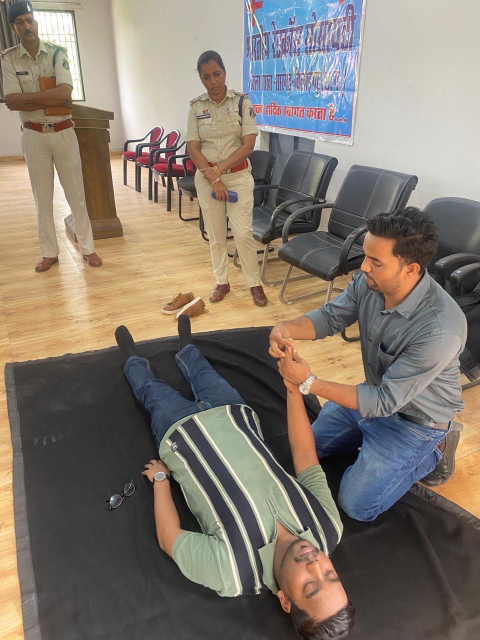 सारंगढ़ बिलाईगढ़ – दिनांक 25.06.2025 को पुलिस अधीक्षक महोदय जिला सारंगढ़ बिलाईगढ़ के आदेशानुसार अतिरिक्त पुलिस अधीक्षक एवं SDOP महोदय के मार्गदर्शन से स्वास्थ्य विभाग व रेडक्रॉस सोसायटी के तत्वावधान में पुलिस विभाग के अधिकारी कर्मचारियों को प्राथमिक उपचार(first aid )के संबंध में पुलिस अधीक्षक कार्यालय में प्रशिक्षण दिया गया।