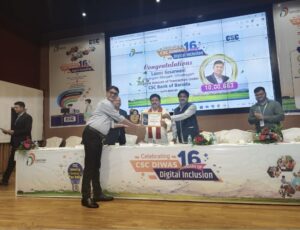 रायपुर। छत्तीसगढ़ में बैंकिंग सेवाओं को डिजिटल प्लेटफॉर्म के माध्यम से गांव-गांव तक पहुंचाने में उल्लेखनीय योगदान देने वाले लक्ष्मी केशरवानी को CSC (कॉमन सर्विस सेंटर) दिवस के अवसर पर सम्मानित किया गया।