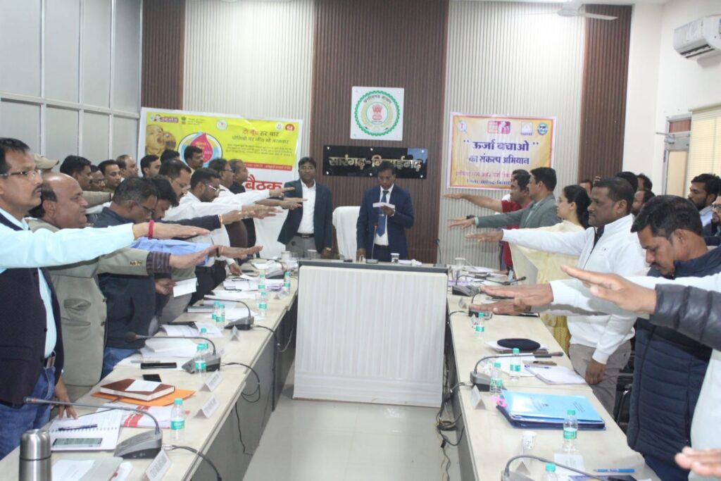 राष्ट्रीय ऊर्जा संरक्षण के उद्देश्य से चलाए जा रहे “ऊर्जा बचाओ संकल्प अभियान” के अंतर्गत मंगलवार को कलेक्टोरेट सभाकक्ष में कलेक्टर डॉ. संजय कन्नौजे ने जिले के प्रभारी अधिकारियों को ऊर्जा बचत एवं नवीकरणीय ऊर्जा अपनाने की शपथ दिलाई।