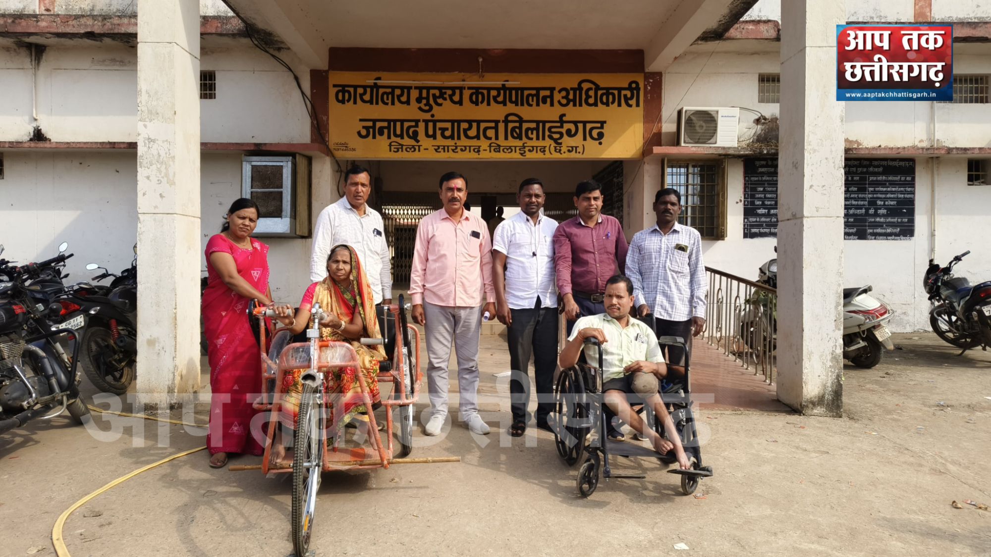 सारंगढ़ बिलाईगढ़, 20 दिसम्बर 2024/कलेक्टर धर्मेश कुमार साहू के निर्देश पर दिव्यांगजनों के बाधारहित आवागमन हेतु बिलाईगढ़ जनपद के ग्राम पंचायत जमगहन निवासी दिव्यांग बुधियारिन बाई को ट्राइसाइकिल और ओम प्रकाश साहू को व्हील चेयर का वितरण जनपद अध्यक्ष के प्रतिनिधि बोधीलाल कत्थकार के साथ जनपद पंचायत सदस्य भरत लाल साहू एवं लक्ष्मीधर यादव द्वारा किया गया। उप संचालक समाज कल्याण विनय तिवारी ने दोनों दिव्यागजनों को शुभकामनाएं दी। सहायक उपकरण मिलने पर दिव्यागजनों ने समाज कल्याण विभाग का आभार व्यक्त किया। इस अवसर पर समाज शिक्षा संगठक गजेंद्र साहू और तकनीकी सहायक मनोज हिरवानी उपस्थित रहे।