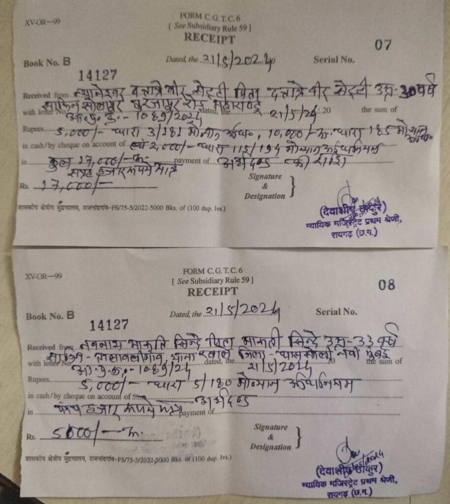21 मई रायगढ़ । सड़क दुर्घटनाओं पर अंकुश लगाने पुलिस अधीक्षक श्री दिव्यांग कुमार पटेल के निर्देशन पर लगातार यातायात पुलिस द्वारा कार्यवाही की जा रही है । इसी क्रम में 17 मई शुक्रवार की रात्रि ढिमरापुर चौंक से शहर अंदर नो पॉइंट में घुसी भारी वाहन क्रमांक MH 43 CE 5488 को ट्रैफिक पुलिसकर्मी द्वारा यातायात थाने लाया गया । वाहन चालक न्यानेश्वर दत्तात्रे वीर सेट्ठी शराब सेवन करना प्रतीत होने पर ब्रीथ एनालाइजर से स्वांस का जांच किया गया, वाहन चालक शराब सेवन पाया गया जिसे नो एंट्री में वाहन प्रवेश करने की जानकारी देते हुए उससे ड्राइविंग लाइसेंस और वाहन के कागजात पेश करने कहा गया । वाहन चालक ने ड्राइविंग लाइसेंस नहीं होना बताया, वाहन के कागजात अनुसार वाहन नवी मुंबई के नवनाथ मारुति शिंदे के नाम पर पंजीकृत है । डीसीपी ट्रैफिक रमेश चन्द्रा द्वारा वाहन चालक और वाहन स्वामी पर मोटर व्हीकल एक्ट की सुसंगत धाराओं पर इस्तगासा तैयार कर न्यायिक मजिस्ट्रेट प्रथम श्रेणी रायगढ़ के न्यायालय पेश किया गया था जहां आज वाहन चालक न्यानेश्वर दत्तात्रे वीर सेट्ठी पिता दत्तात्रे वीर सेट्ठी उम्र 30 साल निवासी तुरंजापुर रोड सोलापुर (महाराष्ट्र) पर न्यायालय द्वारा 3/181 MV Act (बिना लायसेंस) में ₹5,000 एवं 185 MV Act (शराब सेवन) पर ₹10,000 तथा 115/194 MV (नो एंट्री जोन में प्रवेश) पर ₹2,000 कुल ₹17,000 रुपए एवं वाहन स्वामी नवनाथ मारुति शिंदे पिता मारुति शिंदे उम्र 33 साल निवासी तालाबली गांव नवी मुंबई पर 5/180 MV Act (बिना लाइसेंस वाहन चालक को वाहन चलाने की अनुज्ञा देने पर) ₹5000 का अर्थ दंड से दंडित किया गया है ।