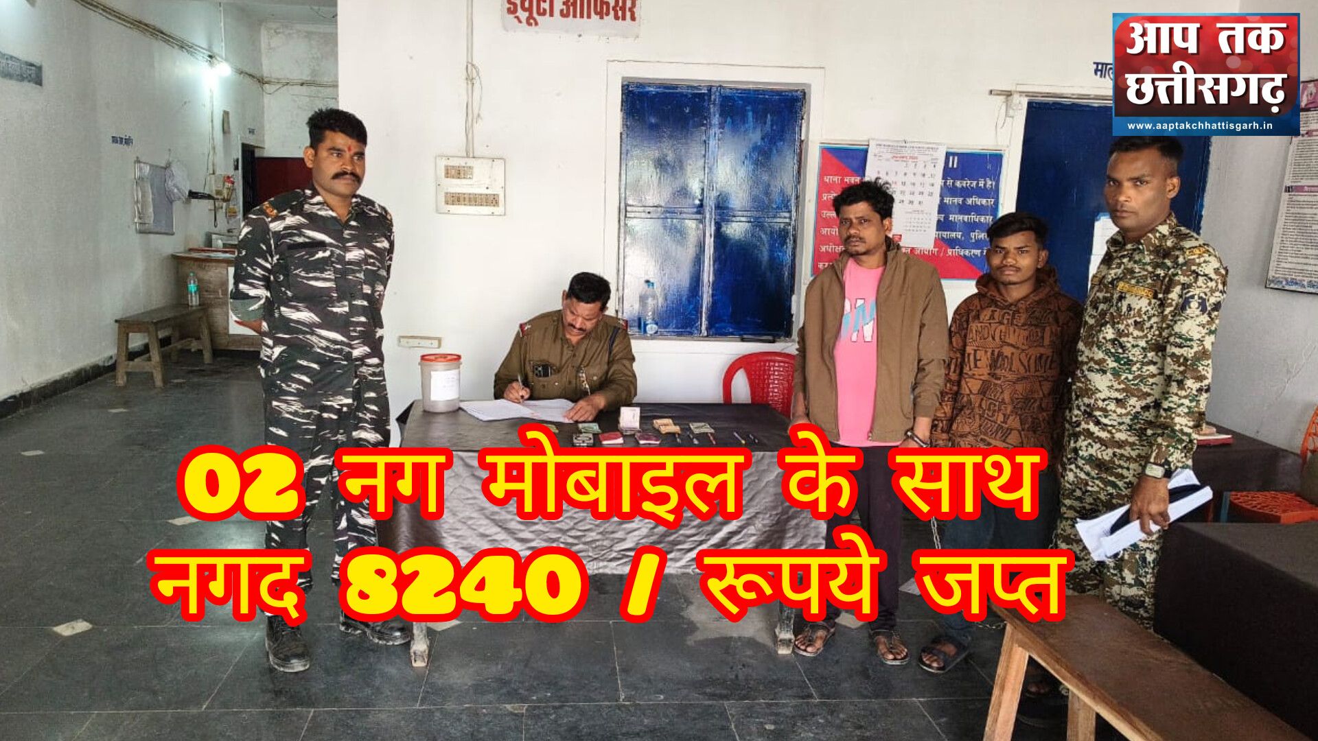 थाना सिटी कोतवाली सारंगढ़ के अपराध क्रमांक 34/2025 धारा- 6, 7 छत्तीसगढ जुआ (प्रतिषेध) अधिनियम 2022 में आरोपी 01. रमन निषाद पिता स्वं. राजकुमार निषाद उम्र 21 वर्ष साकिन फुलझरियापारा सांरगढ थाना सिटी कोतवाली सारंगढ़ जिला सांरगढ – बिलाईगढ 02. राजेन्द्र निषाद पिता स्वं. कार्तिक राम निषाद उम्र 39 वर्ष साकिन रेंजरपारा सांरगढ सिटी कोतवाली सारंगढ़ जिला सांरगढ – बिलाईगढ के सम्बन्ध मे जरिये मुखबिर से सूचना मिलने पर हमराह स्टाफ एवं गवाहान के घटना स्थल सारंगढ मुडा तालाब पार मंच के पास मोबाईल के मध्यम से सट्टा लिखते उक्त आरोपियों के विरुद्ध कार्यवाही की गई ।
