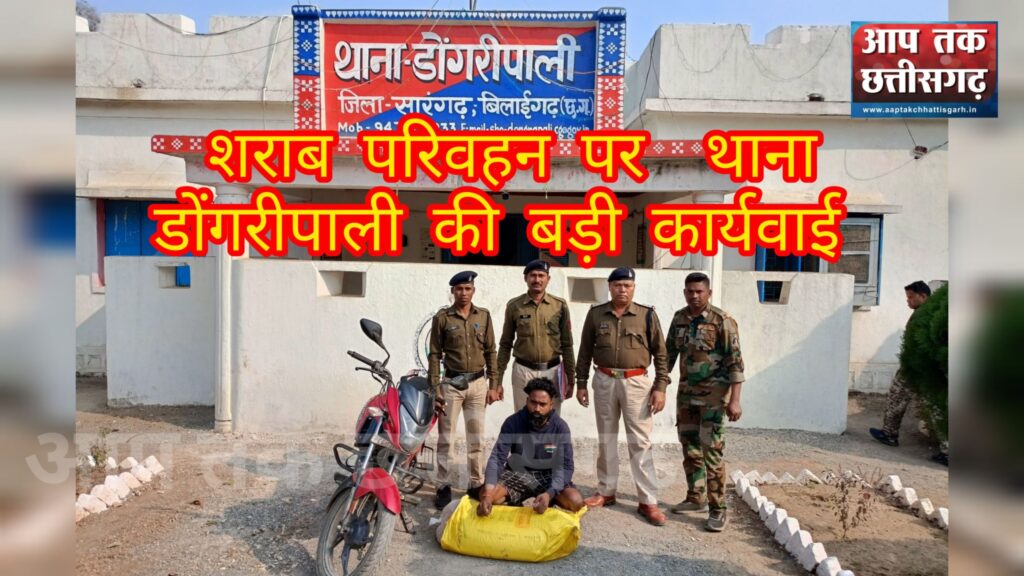 जिला सारंगढ़-बिलाईगढ़ के पुलिस अधीक्षक महोदय श्री पुष्कर शर्मा के द्वारा जिले के सभी थाना/चौकी प्रभारियों को जुआ, सट्टा, शराब, अवैध मादक पदार्थ गांजा में संलिप्त व्यक्तियों के उपर कड़ी से कड़ी कार्यवाही करने निर्देशित किया गया है। इसी कड़ी में श्रीमान पुलिस अधीक्षक महोदय के निर्देशन में तथा श्रीमान अति0 पुलिस अधीक्षक महोदय सारंगढ़-बिलाईगढ़ श्रीमती निमिषा पांडेय एवं श्रीमान् उप पुलिस अधीक्षक महोदय सारंगढ़ श्री अविनाश मिश्रा के कुशल मार्गदर्शन में दिनांक 30.01.2025 को मुखबीर की सुचना पर 50 लीटर अवैध कच्ची महुआ शराब एवं मोटर सायकल क्रमांक CG 13 AZ 7290 को डोंगरीपाली पुलिस द्वारा जप्त कर आरोपी प्रमोद चौहान पिता हलधर चौहान उम्र 27 साल साकिन घोघरा थाना डोंगरीपाली जिला सारंगढ बिलाईगढ छ0ग0 के विरूद्ध कार्यवाही किया गया।