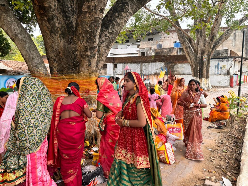 सारंगढ़: ज्येष्ठ मास की अमावस्या पर बृहस्पतिवार को वट सावित्री व्रत रखकर सुहागिन महिलाओं ने अपने पति की दीर्घायु के लिए कामना की। सुहागिन महिलाएं सारंगढ़ पुलिस कॉलोनी से लगे वट वृक्ष , शहर व ग्रामीण क्षेत्रों में स्थित वट वृक्ष के नीचे एकत्रित हुईं और उपवास रहकर अपने पति को दीर्घायु कि कामना के साथ विधिवत पूजा अर्चना किया गया ।सबसे पहले वट वृक्ष को हल्दी का लेप लगाया। फिर पीला धागा को लपेटते हुए सात बार परिक्रमा किया जाता है। इसके बाद जल अर्पण किया गया वही वट वृक्ष का पूजा करने के लिए सुहागिन महिलाएं सारंगढ़ शहर के ह्रदय स्थल तुर्की तालाब में स्थित सैकड़ों वर्ष पुरानी वट वृक्ष के नीचे जुटीं और धार्मिक रीति रिवाजों के अनुरूप पूजा पाठ किया गया वही। इसी तरह सारंगढ़ शहर के साथ साथ ग्रामीण क्षेत्रों में भी वट वृक्ष के नीचे भी महिलाओं का जमावड़ा लगा और पूजा अर्चना संपन्न की गई। जहा शहर के महिलाओं के साथ साथ पुलिस कॉलोनी की सुहागिन महिलाएं भी विधिवत वट सावित्री की।